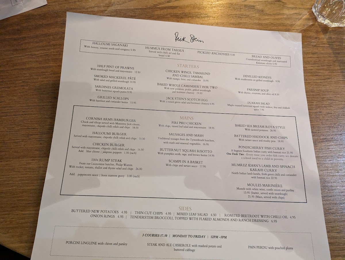 Welcome to The Cornish Arms, a delightful pub nestled in the charming Churchtown of Padstow. Here, you'll discover a vibrant atmosphere complemented by friendly, attentive service. The menu is a celebration of expertly crafted dishes, from the mouthwatering full face steak to the delicately prepared whole plaice enhanced with zesty lemongrass butter. Each plate is a testament to the culinary skill and passion of the kitchen staff.